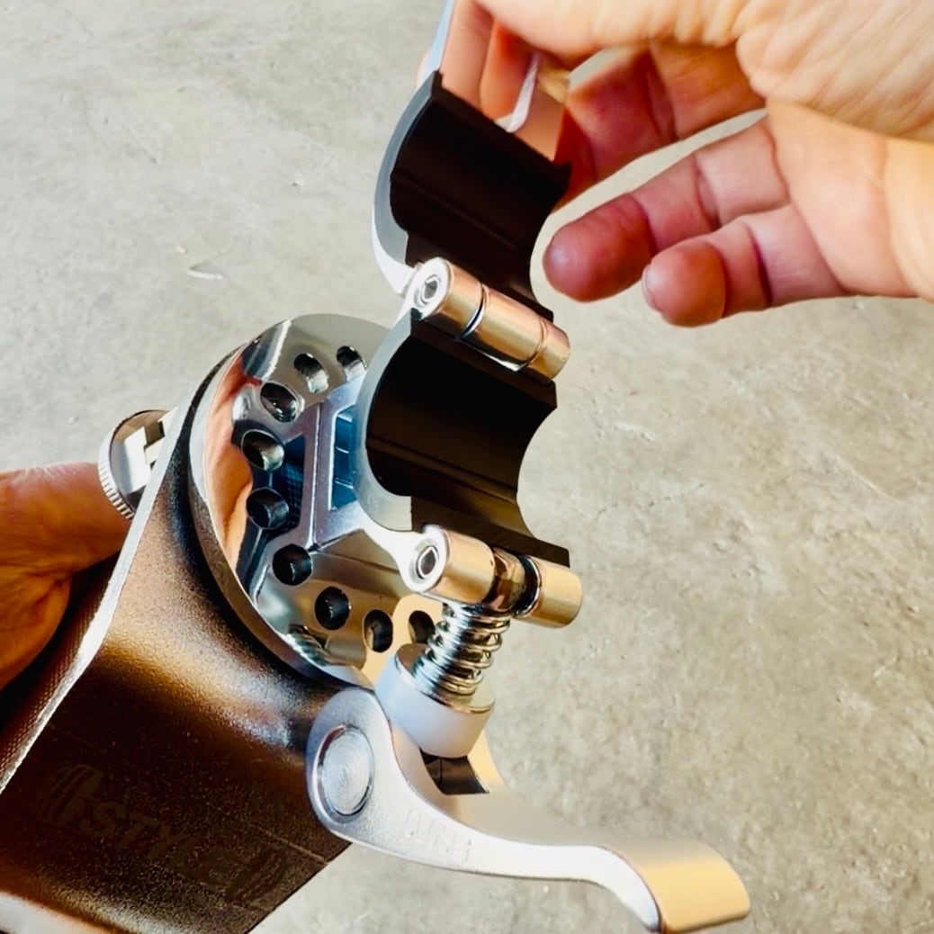 ①角度切り替えのノックピンにロック解除機能が追加されました!これによりグリップが回転フリーになります。