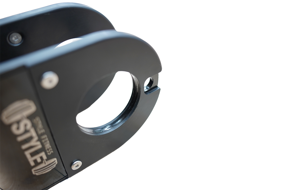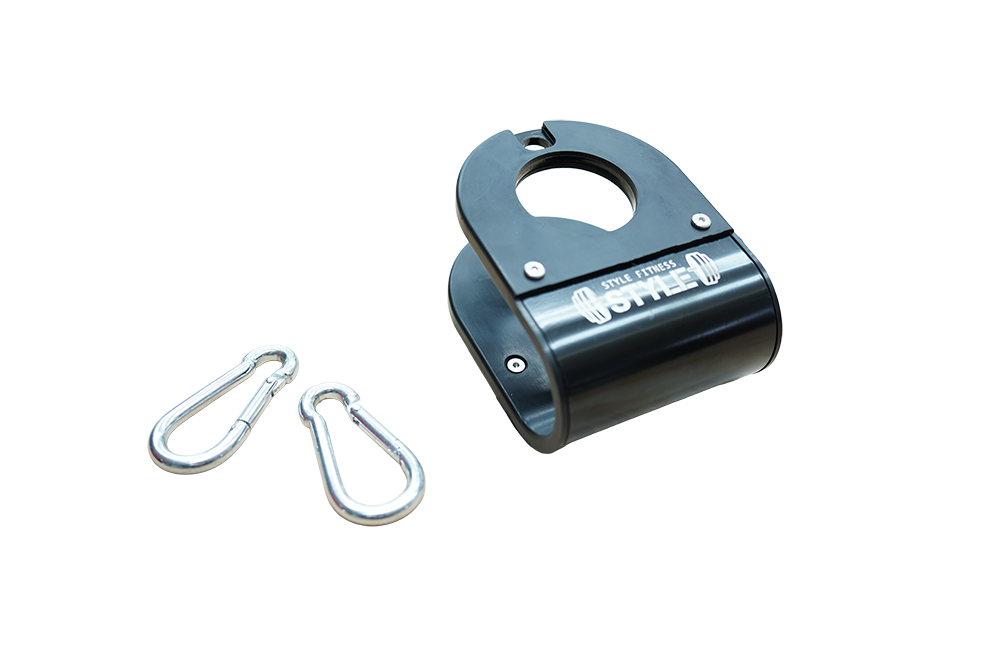 バーベルやスミスマシンのシャフトに簡単にぶら下げることでダンベルをプレート替わりに使用することが可能です。