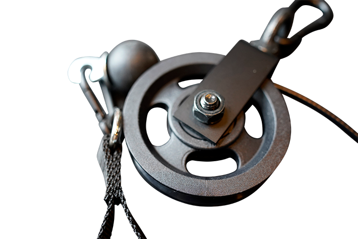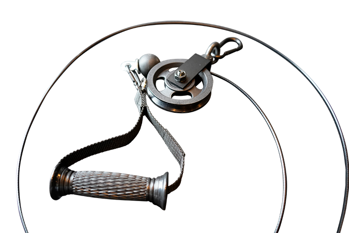 ①ベアリング内蔵の大型滑車により、スムーズで静かな動きを実現しました。